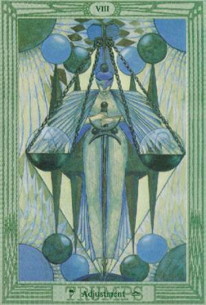 Rovnováha VIII. Základní význam: Dosažení klidného vyrovnaného stavu, ať je tím míněno cokoliv. Prohlédnutí léčky. Krátce: Rovnováha principů. Další významy: Srovnání se sebou samým. Srovnání s okolními vlivy, neposuzování a nehodnocení toho, co přichází. Bystrý úsudek, závěr, který je pravdivý. Dohody, smlouvy. V negativním slova smyslu potíže se soudy, v pozitivním dohoda s úředními místy. Manželství, obchodní dohoda nebo smlouva. Vyjednávání, pokusy o dohodu, o smír, soudní procesy dlouho se vlekoucí. Spory s jinými osobami, které nelze uzavřít. Hledání spravedlnosti ve světském slova smyslu. K zamyšlení nebo meditaci: Každá myšlenka v sobě má svůj vlastní protiklad. |