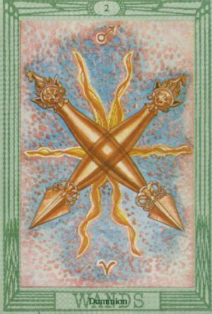 Nadvláda Dvojka Holí Základní význam: Dvojaké stanovisko, které vyplývá ze snahy udržet zdánlivý klid. Tazatel se odmítá podrobit okolnostem a strká hlavu do písku. V práci a hmotných cílech: Neurčitá, nejasná pracovní situace. Nevyjasněný postoj k práci. Někdy může karta upozorňovat na to, že tazatel chce vyhovět povrchním důvodům, které jsou spojeny s podřízením se přání druhých, zatímco sám by řešil celou pracovní situaci jinak. Ve vztazích: Neujasněný postoj k okolí. Vyjde-li karta ve výkladu na vztahy či lásku pak je upozorněním, že tazatel nedokáže dát najevo, co po partnerovi žádá. Partner jej kvůli tomu nebere vážně. Ve vnitřním světě, v osobním vývoji: Upozornění na pasivitu. K tomuto neproduktivnímu postoji dochází proto, že se člověk bojí něco si přiznat. Tento strach je svírající a zbytečný. Situace nazrála k zásadnímu rozhodnutí. Po období nejasností je možno udělat zásadní krok kupředu, ovšem za podmínky, že jste ochotni k výrazné změně osobních postojů. |
