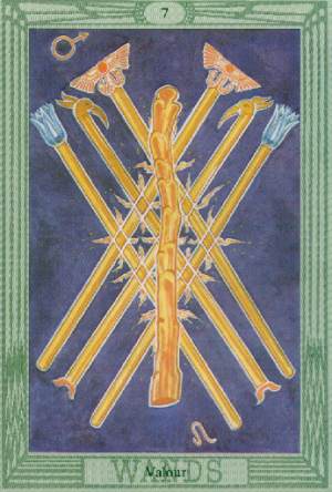 Umění XIV. Základní význam: Spojení se sebou samým. Nalezení celistvosti, integrace doposud nevědomých prvků do vědomé oblasti. Krátce: Cesta dovnitř. Další významy: Pečlivá práce mysli. Přemýšlení nad sebou samotným, plánování, myšlenkové konstrukce, zobecňování. Představa o budoucnosti, hledání nových cest. Hledání uplatnění pro nevyužité nápady. Tím spíše bude dosaženo úspěchu, čím důkladnější bude úvaha. Promyšlené činy, přesné plány. Nové tvůrčí myšlenky jež vedou k vynálezům, velkým úspěchům, popularitě. Umění diplomacie, schopnost manipulace. Situace, ve které osoba musí nenadále změnit názor. Situace natolik protichůdná, že není možné přisoudit jí standardní hodnocení. Nečekané jednání lidí, které je v rozporu s tím, co si o nich osoba myslí. K zamyšlení nebo meditaci: Obě tvůrčí síly jsou k dispozici každému. |