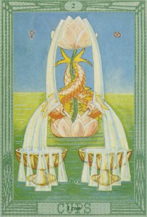 Láska Dvojka Pohárů Základní význam: Pospolitost, šťastné ukončení nejisté záležitosti. Člověk se dostává na své místo, vše je jak má být. V práci a hmotných cílech: Spolupráce. Často také náprava chyb. Nejlépe si ale můžete tuto kartu vyložit buďto jako velmi dobré pracovní vztahy anebo ukončení sporů na pracovišti nebo v podnikatelské oblasti. Často naznačuje také šťastné souvislosti, které mohou nastat a poposunout kupředu pracovní záležitosti. Musíte ale umět šťastných souvislostí využít. Ve vztazích: Zamilování se. Usmíření. Do vztahů vnáší tato karta původní čistou a nezpracovanou lásku - stav zamilování. Ten ještě není korigován rozumem, jde proto o prudké vzplanutí - zda bude toto vzplanutí dlouhotrvající nebo krátkodobé, prozradí okolní karty - velmi dobrá je v tomto smyslu kombinace s Dvojkou Mečů. V rodinné oblasti přináší karta často napravení vztahů, což je často usmíření. Jindy může tazatele vyzývat, aby byl ke svému okolí tolerantnější, snažil se pochopit možnosti druhých a netrval tolik na svém. Ve vnitřním světě a v osobním vývoji: Dvojka Pohárů naznačuje další rozvoj původní životní energie. A tak znamená setkání se sebou samým, kontakt s hlubokými vrstvami své osobnosti a poznání svých. |